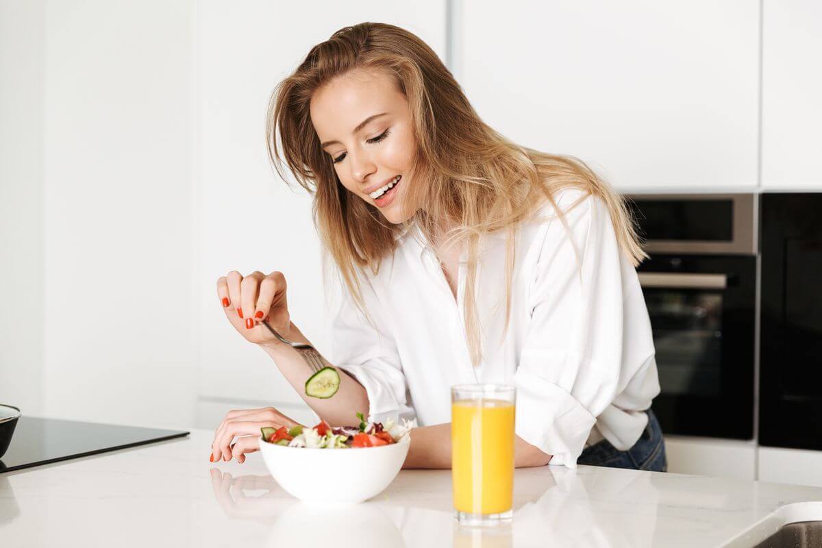 Ежедневно употребляйте не менее 5 порций разнообразных фруктов и овощей (см. «5 порций в день»). Основой рациона должны быть крахмалистые продукты с высоким содержанием клетчатки, такие как картофель, хлеб, рис или макароны. Употребляйте молочные продукты или их заменители (например, соевые напитки). Ешьте бобовые, рыбу, яйца, мясо и другие источники белка.