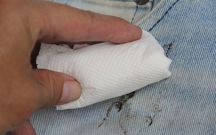 | * Старая зубная щетка | 3. Смочите ватный диск или чистую ткань выбранным растворителем и аккуратно промокните пятно от краев к центру. Не трите, чтобы не размазать пятно. | |