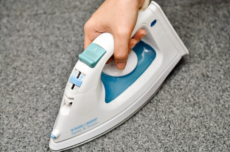 Метод теплового воздействия заключается в следующем: на пятно кладут бумажную или тканевую салфетку и несколько раз проводят сверху утюгом. Разжиженный пластилин останется на ней. Действие повторяют, меняя салфетку на новую. Применять этот способ на коврах из синтетических волокон следует очень осторожно – они имеют свойство оплавляться при высокой температуре. Утюг не должен быть слишком горячим также по причине того, что при чрезмерном расплавлении масса для лепки станет жидкой и стечет вниз, въевшись в основу ковра.