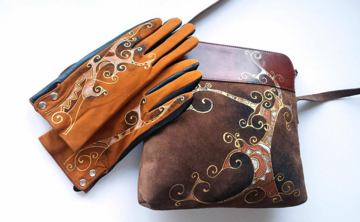Наиболее простой и дешевый способ освежить внешний вид кожаного изделия – это нанесение на его поверхность рисунка. Как правило, роспись выполняется акриловыми красками. Расписать можно абсолютно любую вещь: куртку, сумку, шкатулку, кошелек, альбом для фотографий. Узор наносится на кожаную поверхность самостоятельно или с помощью трафарета.