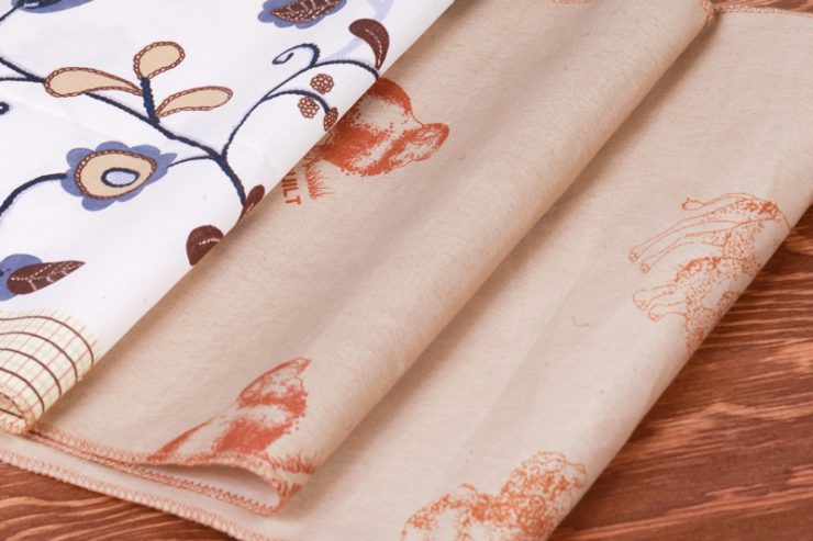 Чтобы добавить коттону прочности и винтажности, в него добавляют лен. Такой материал используется для пошива столового текстиля, постельного белья, штор, одежды для детей и взрослых.