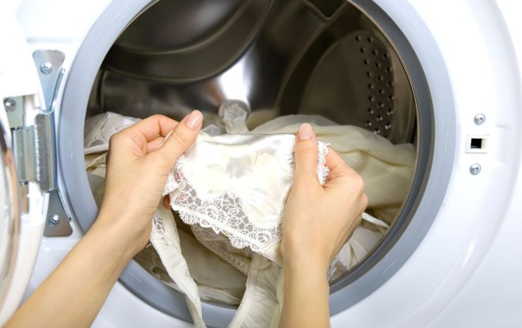 - Используйте мягкие моющие средства. Лучше отказаться от обычного порошка и выбрать гель или шампунь, так как они легче вымываются из волокон ткани.