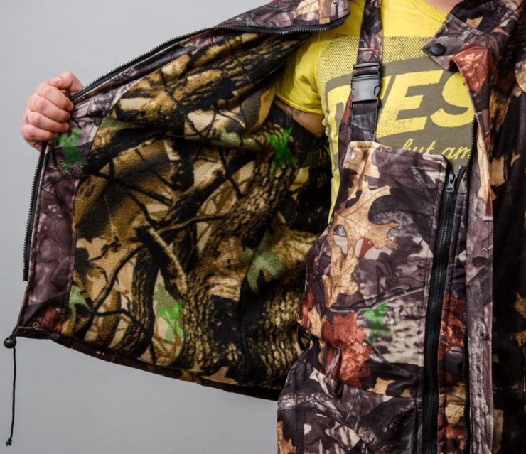 Устойчивость к низким температурам. На морозе ткань не шуршит и не теряет свою эластичность, что особенно важно для охотничьей одежды.