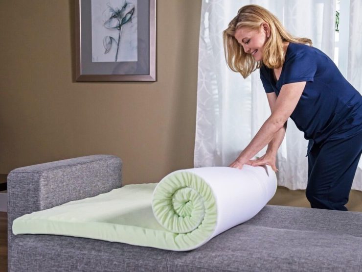 Топпер представляет собой своего рода «наматрасник», который укладывается на мягкую мебель или матрас. Не стоит рассчитывать на его использование для комфортного сна на полу, так как его толщина обычно составляет всего 3-4 см. Этот аксессуар может стать отличной заменой мату для игр вашего ребенка. Чаще всего топперы изготавливаются из синтетических материалов, таких как латекс, вискоэластик или пенополиуретан.