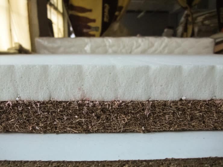 - Кокосовая койра. Наполнитель может состоять из 100% растительного волокна (прессованная койра) или включать латексированную койру.