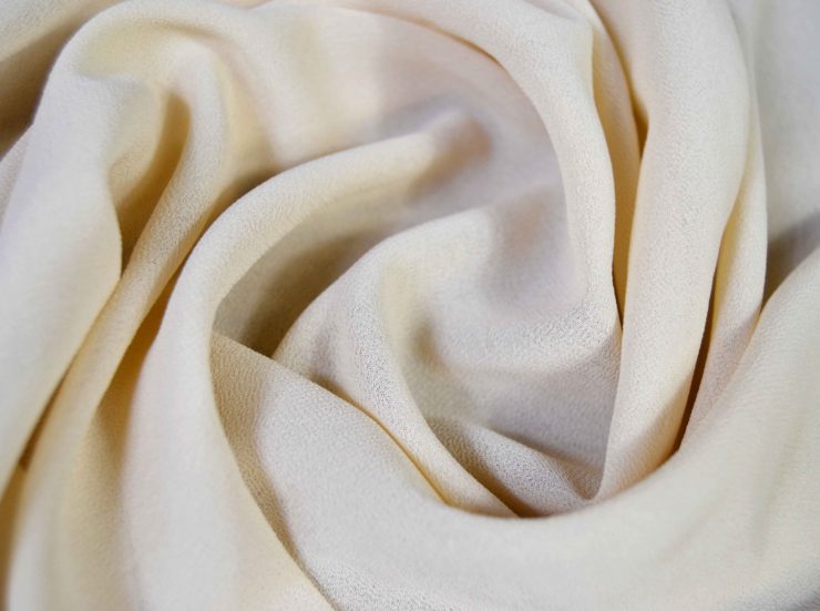 Креп-жоржет представляет собой уникальный вид полупрозрачной ткани. В его составе находятся шелковые нити, которые переплетены креповым способом – в различных направлениях и в определенной последовательности. Благодаря этому методу переплетения, ткань обладает характерной шероховатостью, которую можно ощутить на ощупь и заметить при визуальном осмотре. Обычно волокна шерсти чередуются с вискозными нитями, что придаёт материалу дополнительную прочность и упругость.