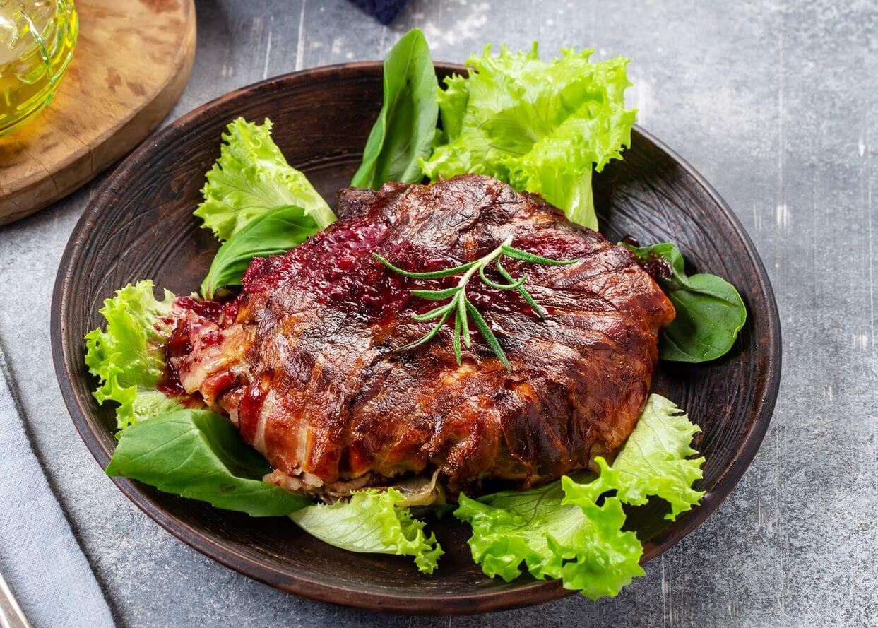 - Обед: мясной стейк, салат из свежих овощей, зелень