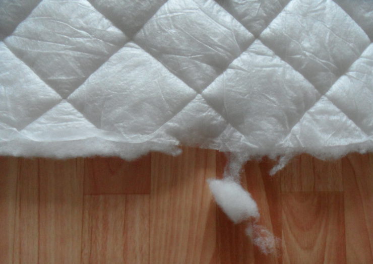 | Как выглядит материал? | Представляет собой объемное, пушистое полотно белого или слегка кремового цвета. Волокна мягкие на ощупь, не сбиваются в комки, хорошо держат форму. | Визуально напоминает синтепон, но более упругий и долговечный. |