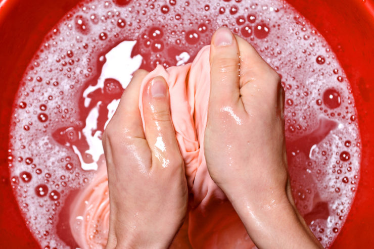 - Стирать вручную, избегая сильного трения, или в стиральной машине на деликатном режиме. Какова должна быть температура воды для стирки? Эта ткань не переносит высоких температур, поэтому лучше стирать изделия в прохладной воде, температура которой не превышает 30 градусов.