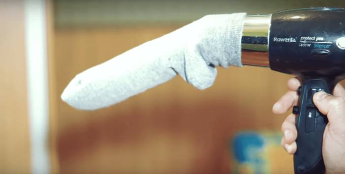 Каждому мужчине знакома ситуация, когда нужно срочно выйти на ответственное мероприятие, а последние носки тихо стоят в углу. Следует судорожная стирка, а потом гвоздь программы – сушка на фене. Фен нужно взять у мамы или жены (желательно незаметно, чтобы они не ругались). Носок нужно натянуть на фен и включить прибор на полную мощность. Правда, невозможно предсказать, что произойдет раньше, – носки высохнут или фен перегреется.