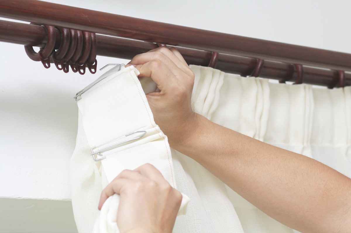 - Сняв штору с карниза, ее надо встряхнуть (лучше на улице или на балконе), чтобы убрать осевшую пыль. Если этого не сделать, во время стирки пыль проникнет в волокна и придаст ткани темный оттенок.