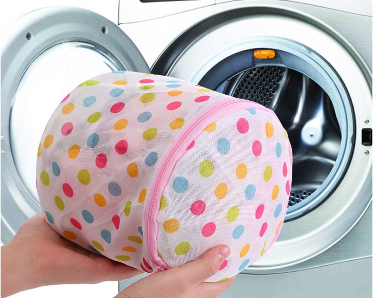 - стирка в специальном мешочке при 30 градусах в режиме «деликатные ткани»;