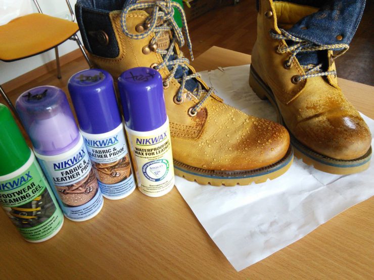 Сегодня в продаже есть водоотталкивающие средства (пропитки четвертого поколения), которые нужно наносить на ботинки перед выходом в дождливую погоду. Подобные продукты обладают невероятной эффективностью, которая обусловлена химической формулой. Если крем с парафином и жиром закупоривает поры кожи, не давая влаге проникнуть внутрь, то пропитка действует более тонко.