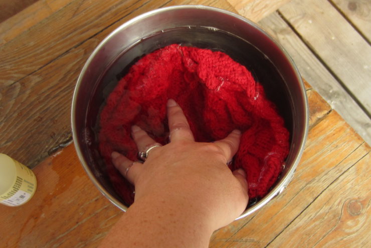 - Замачивание. Шерстяные изделия не рекомендуется замачивать без крайней нужды. Если требуется выстирать сильно загрязненную вещь, можно подержать ее в слегка теплом мыльном растворе в течение 30–60 минут. Для усиления эффекта процедуры в жидкость рекомендуется добавить нашатырный спирт из расчета 4 ст. л. на 10 л воды.