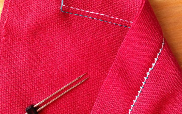 | Двойная игла | Для выполнения такой строчки нить сначала заправляется в левую иглу, затем в правую. Шить следует на низкой скорости. | С помощью двойной иглы можно соединять элементы из любого типа трикотажа. |