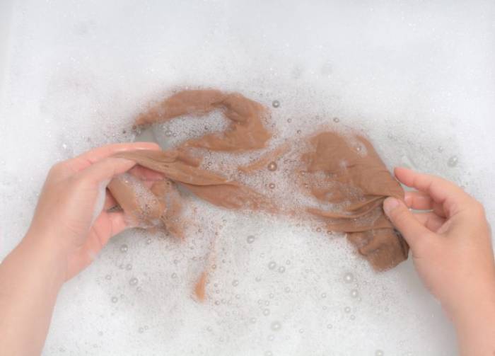 | Моющее средство | Мягкое, без отбеливателей, кондиционеров и хлора. | Отбеливатели и кондиционеры повреждают эластичные нити, хлор разрушает структуру ткани. |