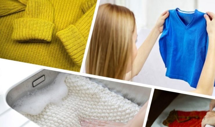 Опытные хозяйки советуют натянуть севшую шапку на банку. Если у вас есть время, можно надеть усевшийся свитер и носить его до полного высыхания.