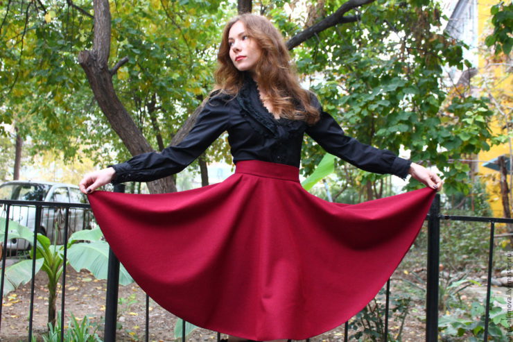 Многие ошибочно полагают, что этот стиль подходит только для летних юбок и платьев. На самом деле, такие изделия прекрасно вписываются и в зимний гардероб. Более того, модели этого фасона могут использоваться не только в повседневной жизни. Особенно эффектно выглядят бархатные или атласные наряды для особых случаев с объемными юбками. Перед тем как отправиться в магазин за тканью, стоит определиться с предназначением юбки-клеш и тем, для какого сезона вы планируете ее сшить.