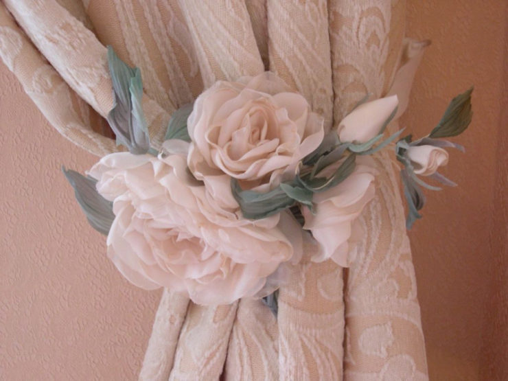 Тканевые цветы могут стать оригинальным декором для штор. Их можно пришить к нижнему краю штор или использовать для создания драпировок. Цветы из атласа или бархата добавят роскоши, а легкие цветы из вуали создадут воздушность и нежность. Такой декор будет особенно уместен в спальне или гостиной, создавая уютную атмосферу.