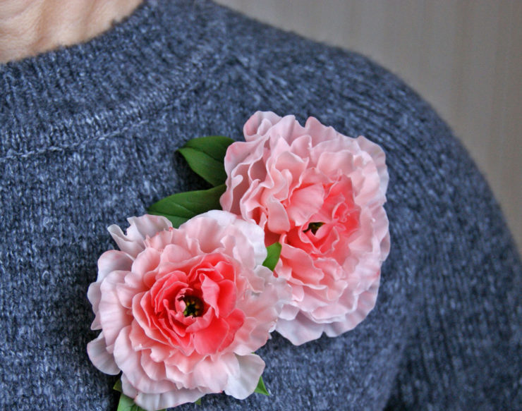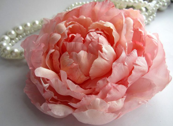 Выбранная ткань должна сохранять форму, но при этом оставаться мягкой. Натуральные цветы, такие как роза и пион, обладают нежными округлыми лепестками с легким блеском. Наилучшим образом их можно воспроизвести с помощью синтетической органзы или вуали.