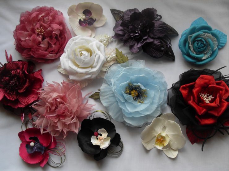 Изначально классическим материалом для изготовления цветов был натуральный шелк, но со временем их стали делать из бархата, велюра, синтетики, трикотажного материала и даже джинсы. Каждый из них имеет свою уникальную фактуру, которую следует учитывать при работе с ними.