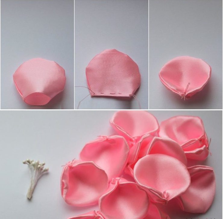 Создание цветов из отдельных лепестков – более трудоемкая техника, чем изготовление из цельного материала. Чтобы сделать такой цветок, нужно: