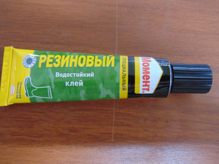 - резиновый клей на основе натурального каучука или специализированный клей для ремонта кожи можно заменить на клей «Момент» или БФ-2.