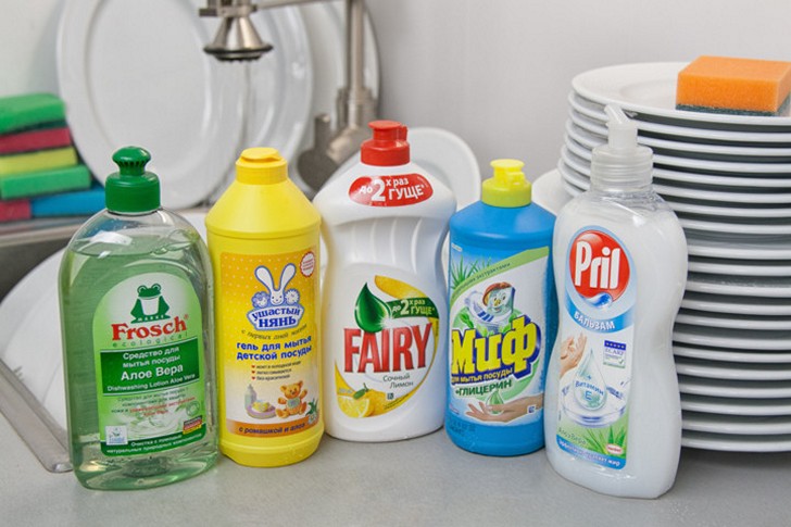- Гели для мытья посуды. Для использования 2 чайные ложки средства разводят в слегка теплой воде и взбивают до образования густой пены. Полученный раствор служит в качестве очистителя. После обработки ткани остатки мыла удаляются с помощью чистой воды и губки для посуды.
