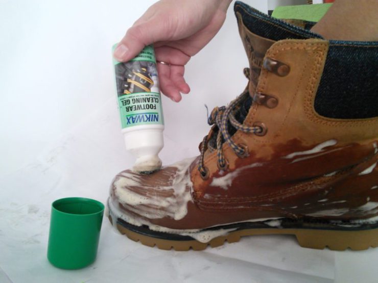 Отличный способ обновить и очистить слегка загрязненную белую, бежевую или рыжую обувь – использовать чистящую пену. Такие средства выпускаются в виде аэрозоля, наносятся методом распыления. Пена соберет всю грязь с ворса, затем ее нужно снять с помощью губки и просушить изделие. От такого средства пара не намокнет, при этом небольшая влажность после обработки может сделать поверхность немного темнее. Через 1–2 часа нубук снова посветлеет.