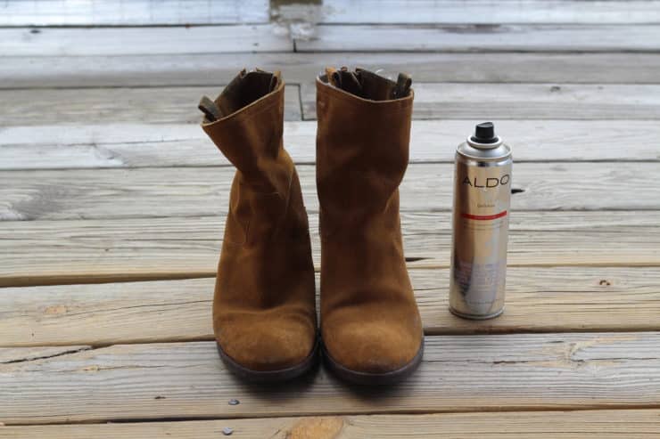 | Замшевая обувь (общий уход) | Водоотталкивающий спрей для замши | После чистки и полного высыхания обработайте обувь спреем для защиты от влаги и грязи. |