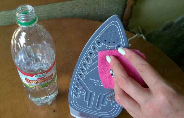 - после процедуры вытереть подошву еще горячего утюга о ткань из материала природного происхождения.