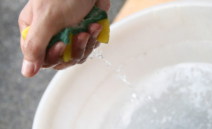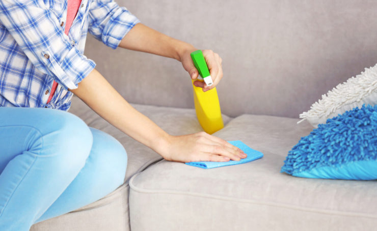 Процесс очистки выглядит следующим образом: сначала готовится мыльный раствор, затем мягкая тряпка или салфетка смачивается в нем, отжимается и аккуратно, без сильного трения, протирается загрязненная поверхность. Спустя несколько минут диван следует протереть чистой влажной тряпкой и насухо вытереть. Аналогично можно использовать жидкость для мытья посуды с той же целью.