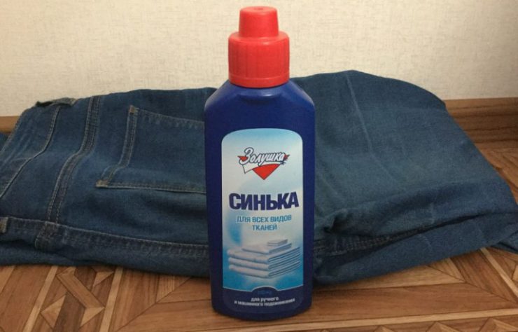 Вернуть синим джинсовым брюкам первоначальный насыщенный цвет можно с помощью обычной синьки. Это простое в использовании, эффективное и доступное средство. При применении данного вещества нужно учитывать, что с его помощью не удастся кардинально изменить оттенок изделия. Синькой получится лишь слегка затонировать джинсы, сделав незаметными образовавшиеся на них потертости.