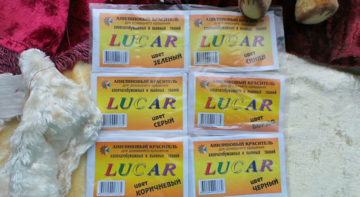 | Синий | Анилиновый краситель для ткани (порошок или жидкость) | Аналогично черному, но важно выбрать нужный оттенок синего. |