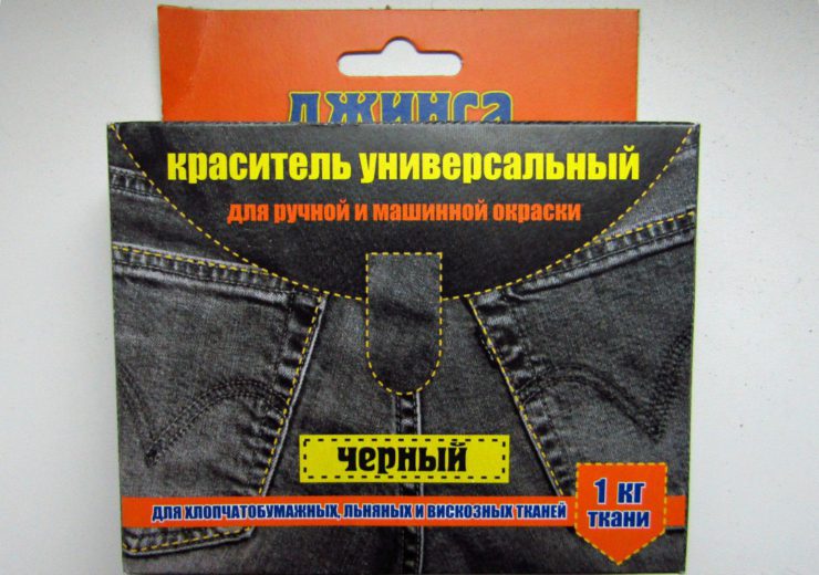 Покрасить брюки в черный цвет можно с помощью специального красителя. Рекомендуется использовать краску от компании «Технохим», известную под названием «Джинса». Этот продукт доступен в большинстве супермаркетов и магазинах, специализирующихся на товарах для рукоделия. Данная краска на анилиновой основе отлично подходит для обновления черных изделий, а также для перекрашивания белых и светлых джинсовых вещей. Краситель можно применять как вручную, так и с использованием машинного метода.