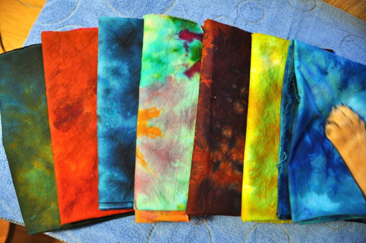 - Анилиновые. Эти красители предназначены исключительно для натуральных тканей и не подходят для синтетики. Их часто используют в техниках батик или градиент, когда ткань постепенно погружается в краску, чтобы нижняя часть окрасилась более интенсивно, чем верхняя.