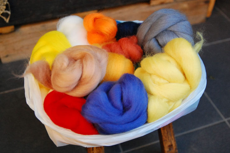 Когда шерсть приобретет необходимый оттенок, ее вынимают и оставляют остужаться. Холодную массу промывают несколько раз под проточной прохладной водой. Для закрепления цвета добавляют немного протравки. Волокна сушат в хорошо проветриваемом помещении или на свежем воздухе вдали от прямых солнечных лучей. После этого их тщательно расчесывают – и шерсть готова к валянию.
