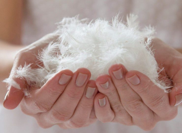 - На стол или другую горизонтальную поверхность кладут несколько слоев бумаги или сухой чистой материи. Перья периодически перемешивают, чтобы обеспечить равномерное просыхание и предотвратить образование комков. Сверху наполнитель накрывают марлей, чтобы при высыхании пух не разлетался.