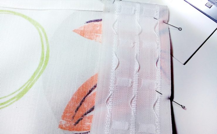 | Клеевая тесьма | Подвернуть материю дважды, используя булавки для предупреждения перекосов. Между слоями поместить клеевую ленту и прогладить ее сверху. | Это самый простой способ придать низу шторы аккуратный вид. |