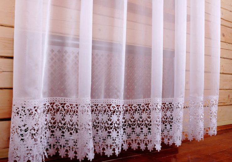Какие только декоративные элементы не используют для украшения тюля! Это и бахрома, и бусины, и стразы, и даже грубые шнуры, которые прекрасно подчеркивают воздушность и легкость изделия. Проще всего украсить его кружевами. Их просто пришивают по низу занавеси. Они не только выполняют декоративную функцию, но и придают нижней части тюля завершенный вид и предупреждают осыпание ткани.