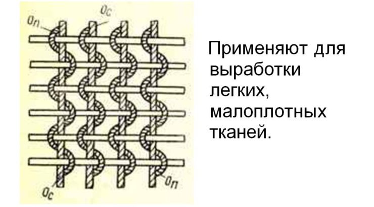 | Простое | Полотняное | Хлопок – ситец, батист. Лен – парусина, бортовка. Шелк – крепдешин, креп-шифон. Шерсть – сукно. | Обладает высокой прочностью и жесткостью, подходит для легкого кроя. |