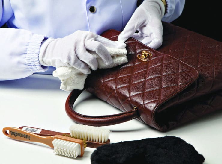 Уход за изделиями требует регулярности. Сумки, портфели и кошельки следует протирать мягкой влажной губкой. Если загрязнения значительные, губку предварительно можно окунуть в теплый моющий раствор, предназначенный для стирки деликатных тканей или шерсти.