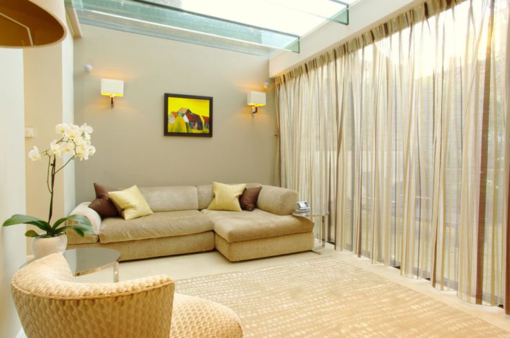 Занавески из органзы в гостиной должны отвечать двум критериям: иметь достаточно торжественный, но не кричащий вид, и хорошо пропускать свет, т. к. эта комната, как правило, самая большая в доме и требует как можно лучшего освещения.