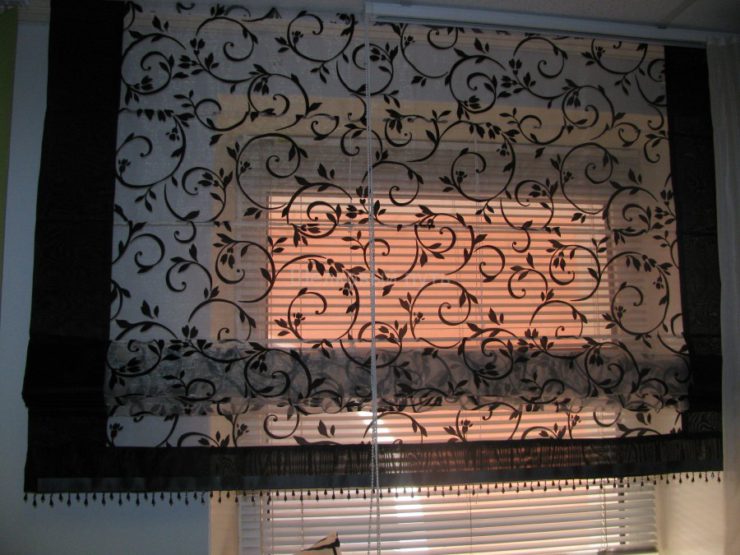 Римские шторы создаются путем деления гладкого материала на равные секции с помощью легких гибких стержней. С внутренней стороны к вертикальным краям крепятся два шнура, которые позволяют поднимать шторы и регулировать их длину. Эти шторы могут служить как самостоятельным элементом декора, так и в сочетании с легким тюлем, что позволяет затемнять помещение в солнечные дни. Для их изготовления применяются самые плотные виды органзы.
