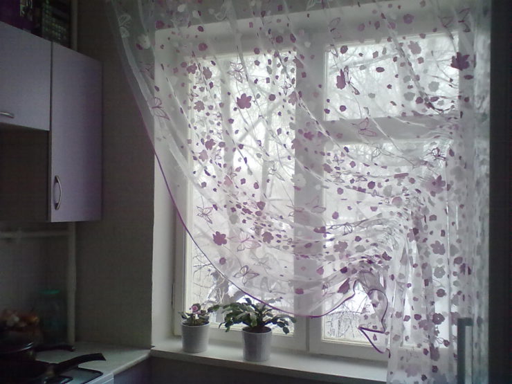 Короткие занавески для кухни из органзы