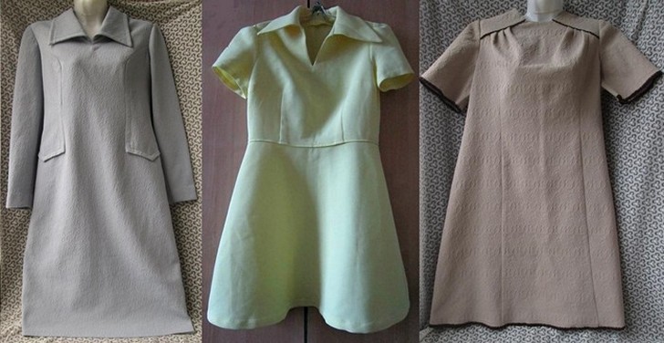 Из синтетических тканей можно создать платья в духе 60-х или 70-х годов. В числе популярных моделей того времени были: полуприталенные силуэты, трапециевидные формы, приталенные платья с юбкой-годе и глубоким вырезом. Чтобы ретро-образ соответствовал современным трендам, его можно дополнить асимметричными элементами, корсетом или кружевом. Ткань может быть как однотонной, так и с принтами в клетку, горох или цветы. Особенно актуальны оттенки синего и красного, которые были на пике популярности в 60-е.