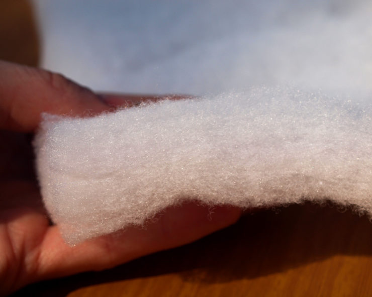 Синтепон обладает легким весом, водоотталкивающими свойствами, хорошими теплоизоляционными качествами и, что немаловажно, доступной ценой, что делает его отличной альтернативой дорогим пуховым и шерстяным изделиям. Он напоминает вату, но отличается упругими жесткими волокнами (см. на фото). Термин «синтепон» охватывает группу материалов, созданных из полиэфирных волокон (полиэстера) с добавлением различных синтетических и натуральных компонентов.