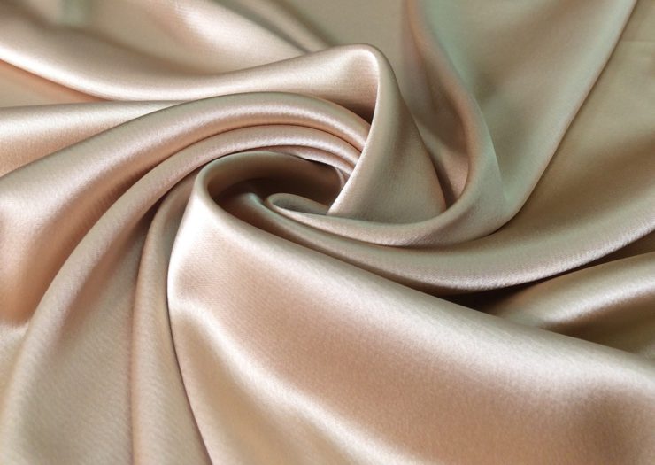 Сатин. Для этого полотна используется особое сатиновое переплетение нитей. Материя достаточно плотная, с гладкой лицевой стороной и менее гладкой изнаночной. Она обладает легким блеском, но требует утюжки из-за высокой сминаемости. Из сатина шьют летние платья, блузы, мужские рубашки и постельное белье.