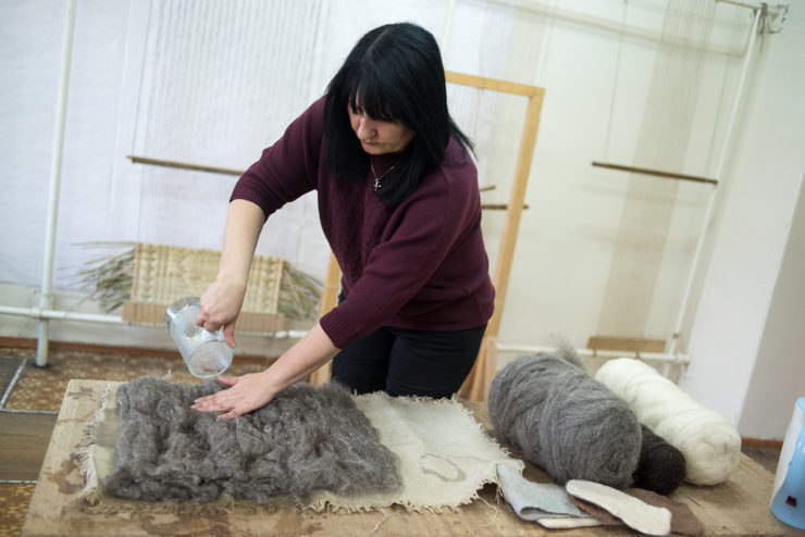 После завершения валяния образуется плотная масса, обладающая высокой прочностью на разрыв. На заключительных этапах материал формуется и отправляется в красильный цех для окраски. После покраски осуществляется сушка, финальная отделка (удаление крупных не свалявшихся волокон) и тестирование материала в лаборатории технического контроля.