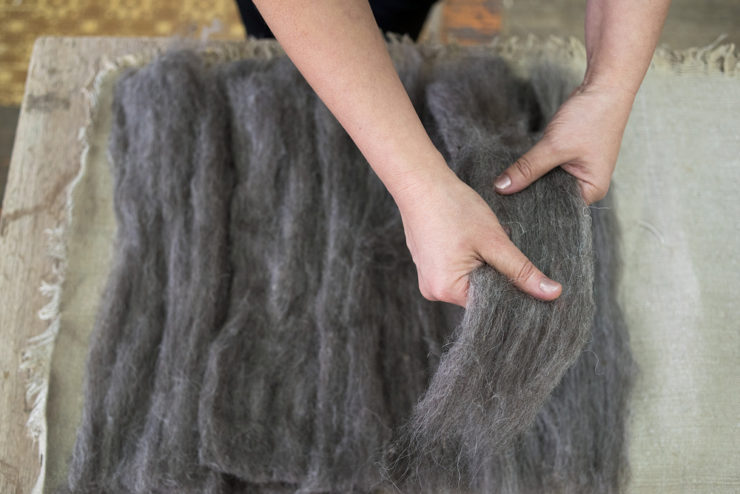 - Разглаживайте шерсть круговыми движениями в разных направлениях. Когда волокна перестанут отделяться друг от друга, переместите полотно на бамбуковую салфетку и сверните его в рулон.